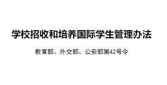 Administrative Measures for the Recruitment and Training of International Students.... COLUMN:[Downloads] DATE:2022-03-02 http://www.moe.gov.cn/srcsite/A02/s5911/moe_621/201705/t20170516_304735.html ...