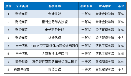 Our School Won 8 Golds in the 2022 Shandong Vocational College Skills Competition.... COLUMN:[News] DATE:2023-01-17 The 2022 Shandong Vocational College Skills Competition has come to an end, and 79 participants from 32 teams of our school compete in 8 categories. Our school finally won 8 first prizes, 7 second prizes and 8 third prizes, and once again won 8 gold medals in the provincial competition, successfully completing the expected competition goals. In recent years... ...