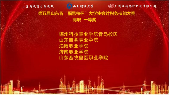 Our School Won the First Prize of “Foster Cup” College Students’Accounting and Tax Skills Competition.... COLUMN:[News] DATE:2022-03-14 Recently, the 5th Shandong “Foster Cup” College Students’ Accounting and Tax Skills Competition was held online. It is divided into higher vocational group and undergraduate group. Among the 51 teams in the higher vocational group, our school ranked second and won the first prize. This competition highlights the intelligent characteristics of the new business specialty in the new era, prom... ...