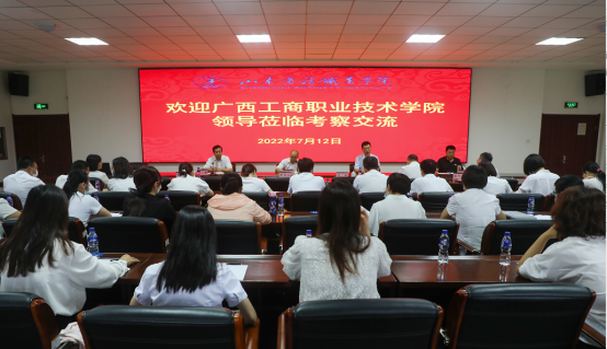 Guangxi Vocational College of Technology and Business Came to Our School for Exchanging Experience.... COLUMN:[News] DATE:2022-08-02 Recently, Mr. Qin Wuyun and Mr. Li Wei, leaders of Guangxi Vocational College of Technology and Business came to our school to exchange on the experience of hosting the National Grain Industry Vocational Skills Competition and the construction of high-level professional clusters. At the beginning of the seminar, Mr. Geng Jianmin, the leader of Shandong Business Institute, expressed a warm wel... ...