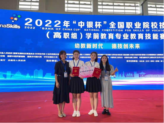 Our Students Won the Second Prize in the National Competition.... COLUMN:[News] DATE:2022-09-09 Recently, the team of preschool education in School of Culture and Tourism, representing Shandong Province, won the second prize in 2022 “Bank of China Cup” National Competition for Skills of Vocational Education Competition. There were 68 teams with more than 300 participants from all over the country in this competition. The competition mainly examined the comprehensive skills of kinder... ...
