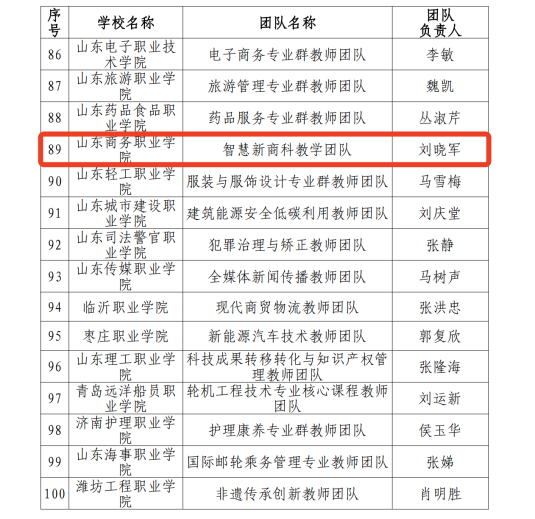 Shandong Business Institute was Awarded the Third Batch of “Huang Danian Teacher Teams of Shandong Provincial Colleges and Universities”.... COLUMN:[Research Collaboration] DATE:2023-07-28 Recently, Shandong Provincial Department of Education released the "Notice on Announcing the List of the Third Batch of "Huang Danian Teacher Teams of Shandong Provincial Colleges and Universities", and the "Wisdom New Business Teacher Team" of Shandong Business Institute was awarded as the third batch of "Huang Danian Teacher Teams of Shandong Provincial Colleges and Universities". ... ...