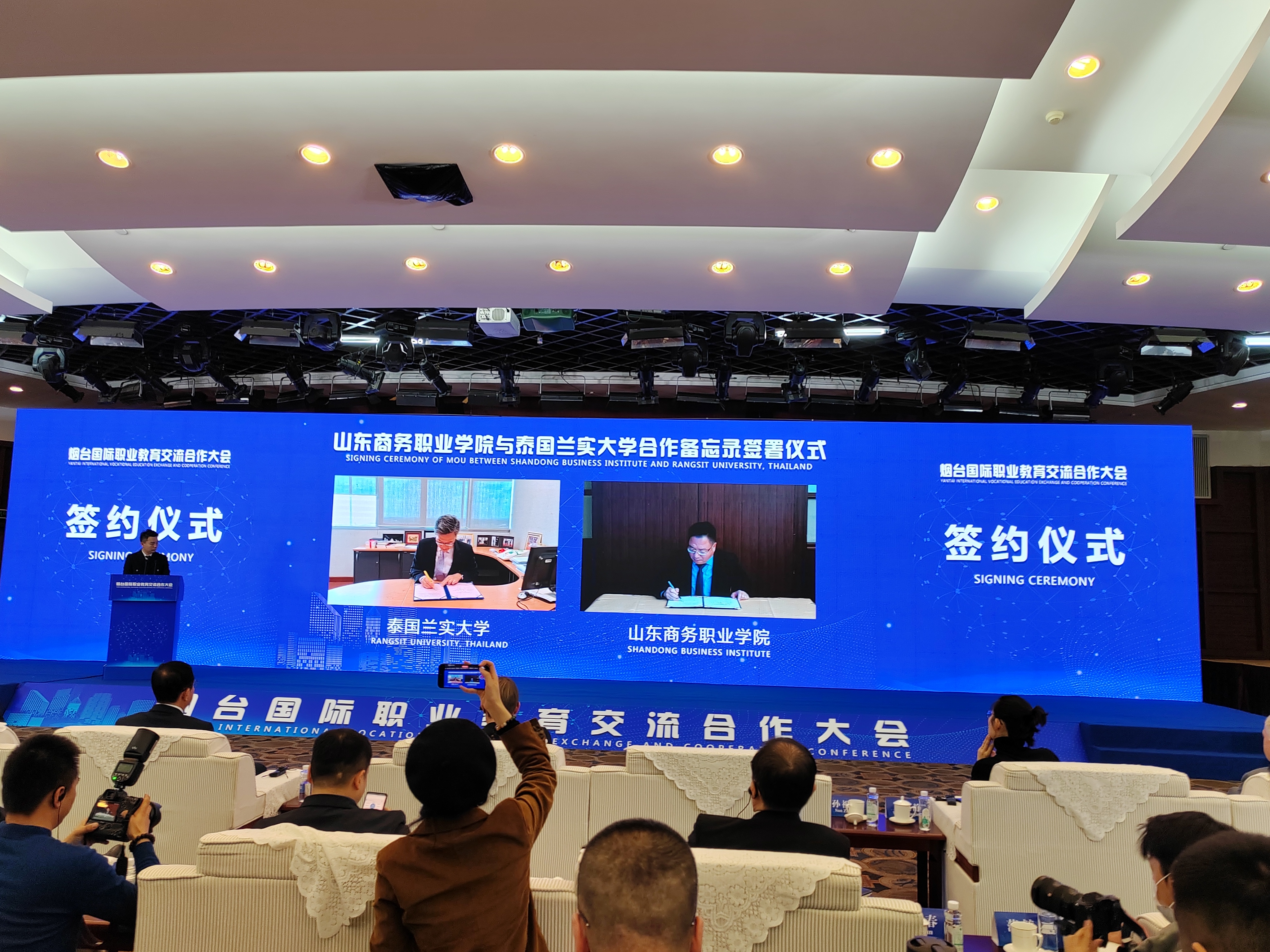 Shandong Business Institute has Signed Cooperation Agreements with Two Overseas Universities.... COLUMN:[Research Collaboration] DATE:2023-12-01 Recently, the Yantai International Vocational Education Exchange and Cooperation Conference was held at the Dongfang Haotian Hotel. During the conference, ,Shandong Business Institute signed a cooperation agreement with Thailand's Rangsit University to build an "International Joint Laboratory" and a strategic cooperation agreement with the College of Technology in Laos.The Yantai Internationa... ...