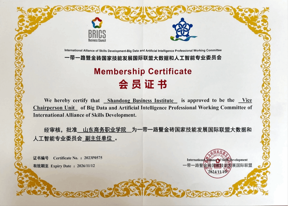 Our School Elected as Deputy Director Unit of the Belt and Road and BRICS Skills Development International Alliance.... COLUMN:[Research Collaboration] DATE:2025-03-04 Recently, our school has been successfully elected as the Deputy Director Unit of the Big Data and Artificial Intelligence Professional Committee under the Belt and Road and BRICS Skills Development International Alliance. Gao Xiaoyan, Dean of the School of Information Engineering, has been elected as a council member of the committee. This achievement marks a significant breakthrough for our school ... ...