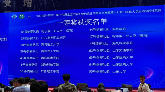 Recently, the 16th National Student Structural Design Competition and the 15th Shandong Student Structural Design Competition were held in Shandong Agricultural University. 69 teams from 34 universities, including Shandong University, Harbin Institute of Technology, China University of Petroleum, Yantai University, Ludong University and Qingdao University of Technology, participated in the competition. 69 teams from 34 universities including Shandong University, Harbin Institute of Technology, China University of Petroleum, Yantai University, Ludong University and Qingdao University of Technology participated in the competition, and Shandong Business Institute won the first prize and successfully advanced to the national competition.