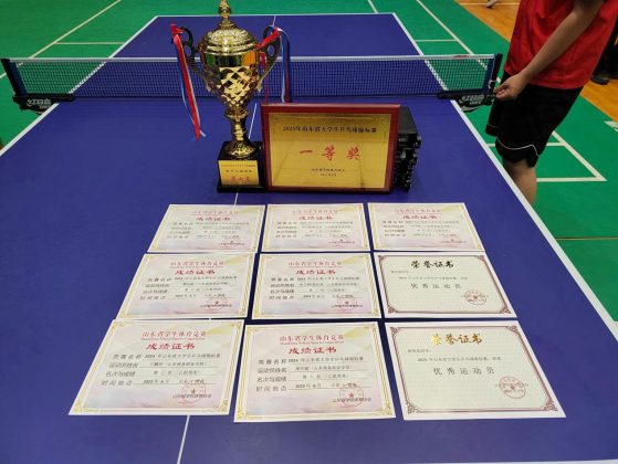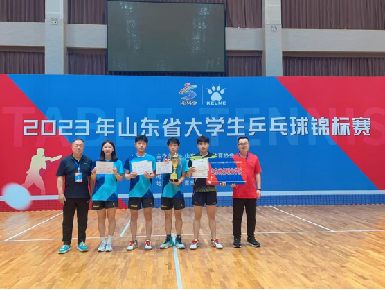 Recently, the 2023 Table Tennis Championships for Shandong Provincial College Students was held in Qingdao Technical College. A total of four athletes participated in the competition. After intense competition, our school won the first prize in the team competition, and achieved good results such as such as seventh place in the men's team, third place in the mixed doubles, fourth place in the women's singles, and sixth place in the men's singles.