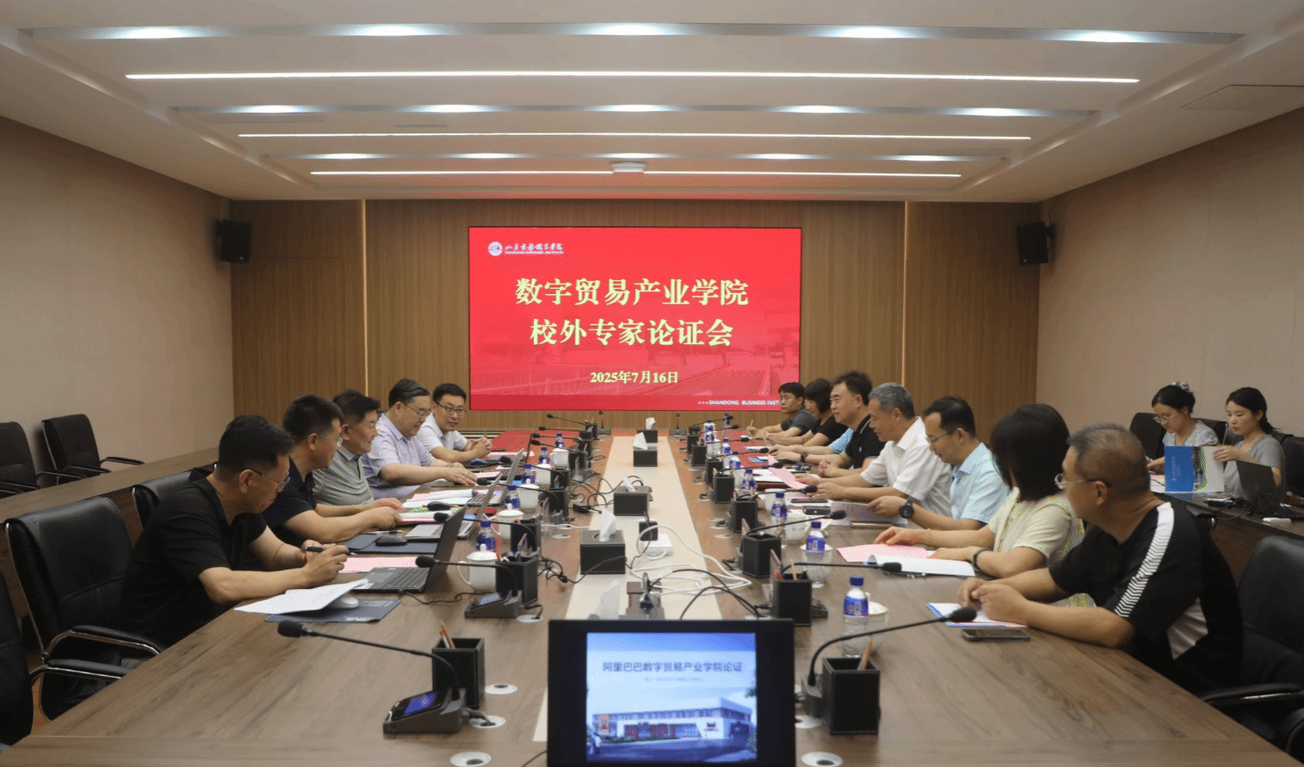 To deepen the integration of industry and education and build a high-quality, diversified educational platform that further highlights our "business strengths," our university held an off-campus expert demonstration meeting for the Alibaba Digital Trade Industry College in the conference room on the first floor of the administration building on the afternoon of July 16. The meeting invited external experts, including Shi Zhong, President of the Shandong Vocational and Technical Education Association; Liu Xin, Dean of the Shandong Vocational Education and Industrial Talent Research Institute; Tao Weiwei, Party Committee Member and Vice President of Weihai Vocational College; Guan Jianwei, Director of the Legal Affairs Office of Ludong University; and Hou Guoqiang, Director of the Cooperative Education Office of Weifang Business Vocational College, to conduct a comprehensive evaluation. Wang Faming, Deputy Party Secretary and President of our university; Wei Caikui, Party Committee Member and Secretary of the Discipline Inspection Commission; as well as leaders and relevant staff from the Department of Industry-Education Cooperation and Employment and the School of Economics and Management attended the meeting.