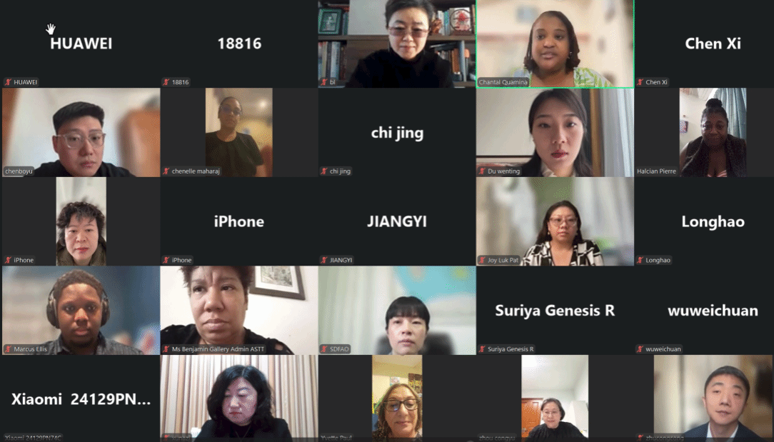 The Chinese participants in this event included multiple leaders, teachers, and student representatives from the Chinese Embassy in Trinidad and Tobago, the Foreign Affairs Office of Shandong Province, the Foreign Affairs Office of Yantai City, and the International Education College and School of Art and Design of Shandong Business Institute. The Trinidad and Tobago side was composed of leaders from the Trinidad and Tobago National Carnival Commission, the Trinidad and Tobago Arts and Cultural Association, as well as cultural and art experts. The two sides interacted warmly and amiably online in a lively atmosphere.
