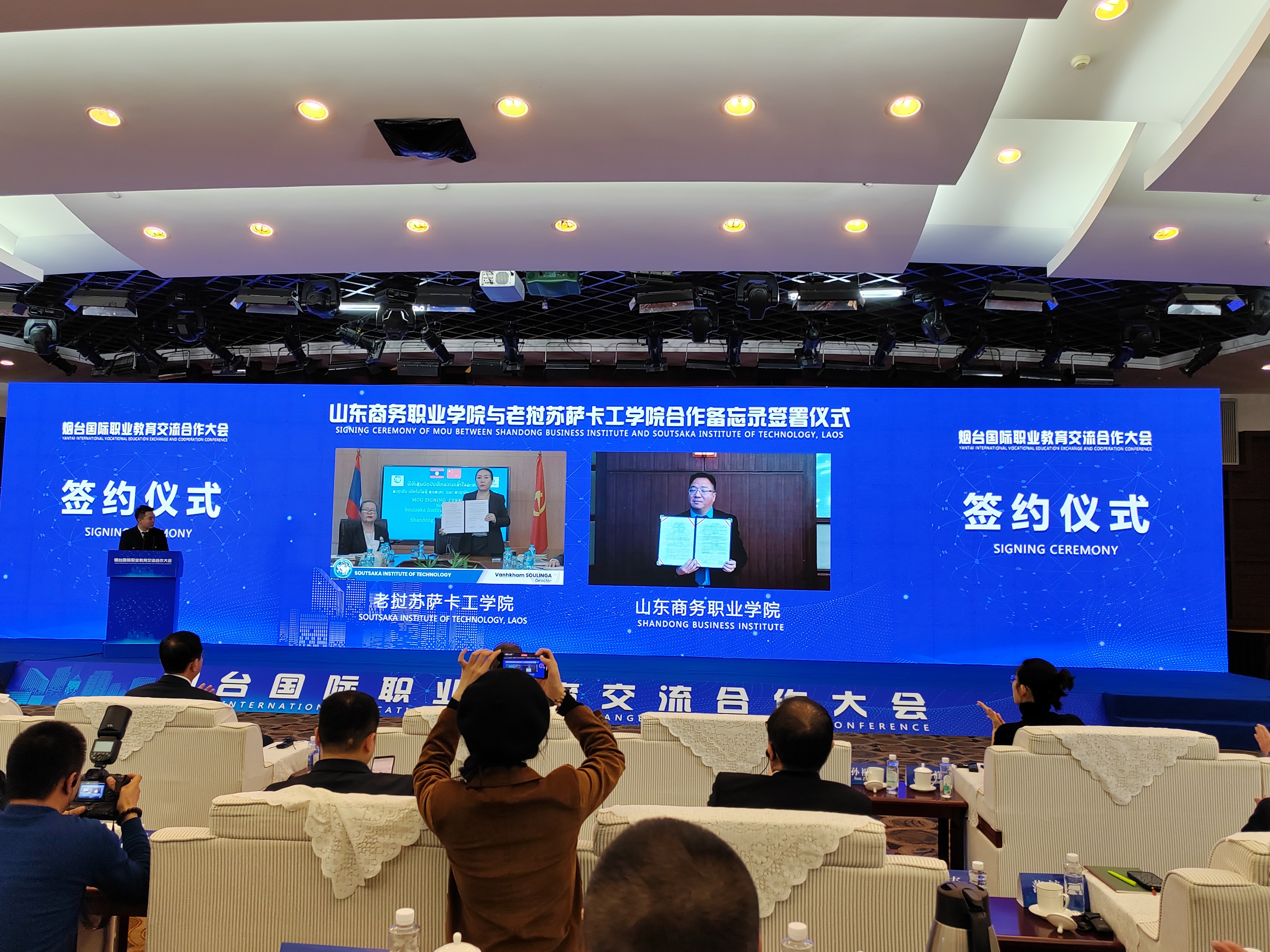 Recently, the Yantai International Vocational Education Exchange and Cooperation Conference was held at the Dongfang Haotian Hotel. During the conference, ,Shandong Business Institute signed a cooperation agreement with Thailand's Rangsit University to build an "International Joint Laboratory" and a strategic cooperation agreement with the College of Technology in Laos.
